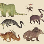 back to 20 minute #paleostream sketches, nanuqsaurus, afrovenator, caviramus and darwinopterus #art #digitalart #paleoart #sciart