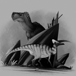 #paleostream 20 minute sketches, oksoko, homotherium, gigantspinosaurus and niebla #art #digitalart #paleoart #paleontology #dinosaur