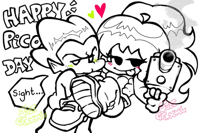 Day 19‼️ HAPPY PICO DAY 🤭💚❤️ (I'm so proud of this idk how I did it help) I might color this IDK #FNF #fridaynightfunkin #picoday2023