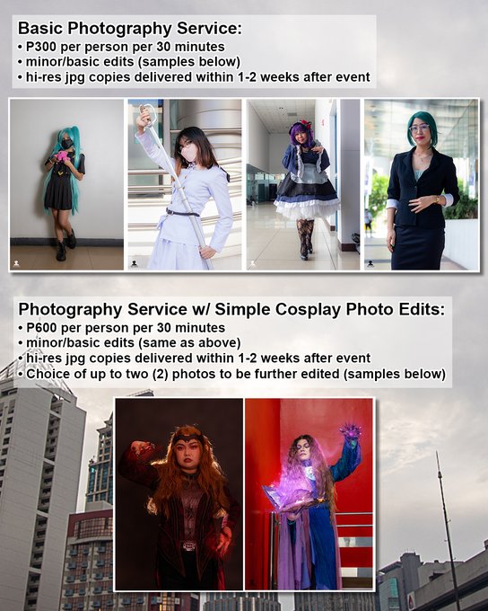Anyone interested in availing of @niogitsune and I's services/joint-services for the upcoming cons? Just hmu. #ACX2022 #CONQuest2022 #cosplay #Cosplayphotography