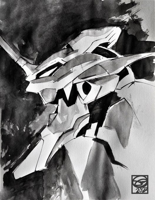 Ink drawing of the Eva 01 from Neon Genesis Evangelion. #inktober2022 #inktober #neongenesisevangelion #art #fanart #artist #artistsontwitter #anime #manga