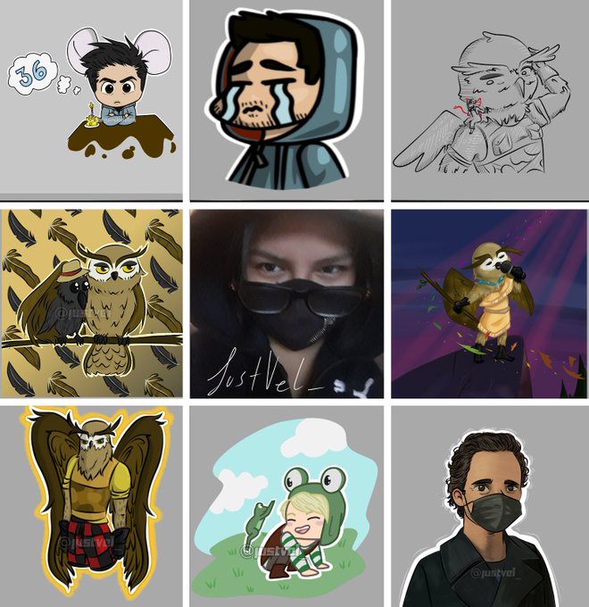 Aprovecho que ya es tarde jijiji Fue complicado elegir entre tanto dibujo jajaja pero destaco estos aunque podría poner más. Orgullosa de todos y cada uno. ^^ #ArtvsArtist2021 (Mucho búho xd)