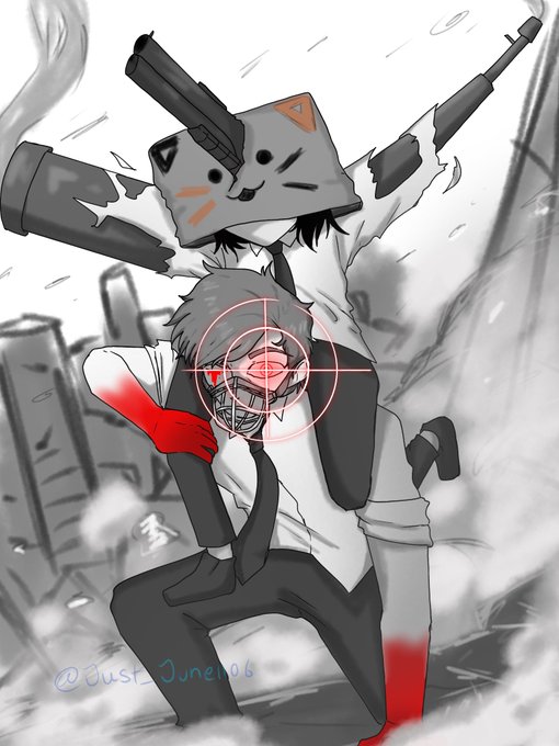 Decided to turn the gun au from crumb’s drawing into manga cover style, first is Ranboo! (All like & rt are appreciated +untag in the reply) #ranboofanart #arsenalcat