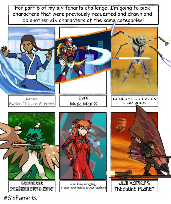 Part 6 of 6 of my #SixFanarts 2020, and I used my own rules for this final installment of the year. Categories I picked are Avatar, Mega Man, Star Wars, Pokemon, Evangelion, and Disney. #art #FanArtFriday #sixfanarts2020 #fanart #gameart #animeart #cartoon