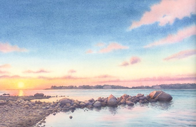 “Sunset at Crow Point” Watercolor on Paper 17” by 11” This was such a fun commission to work on. A spot on the Cape that you wouldn’t know existed unless you were taken to it. Getting to experience a place makes the process that much more special. #watercolor #landscapepainting
