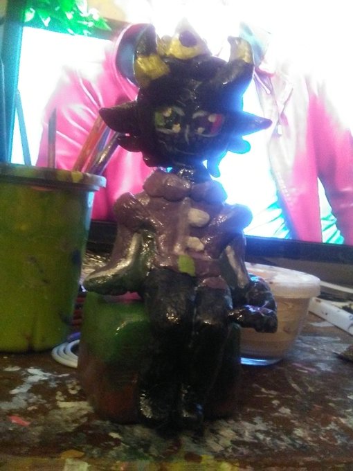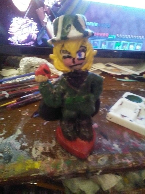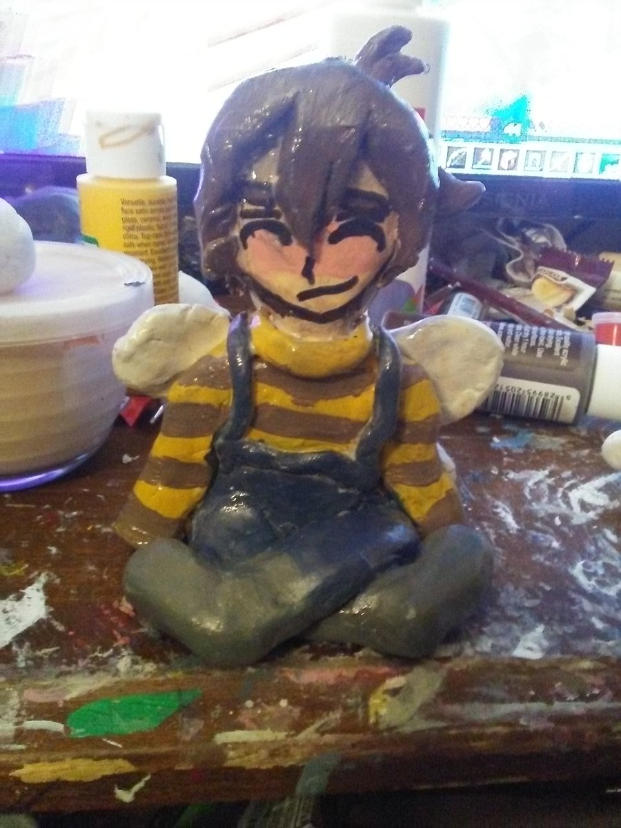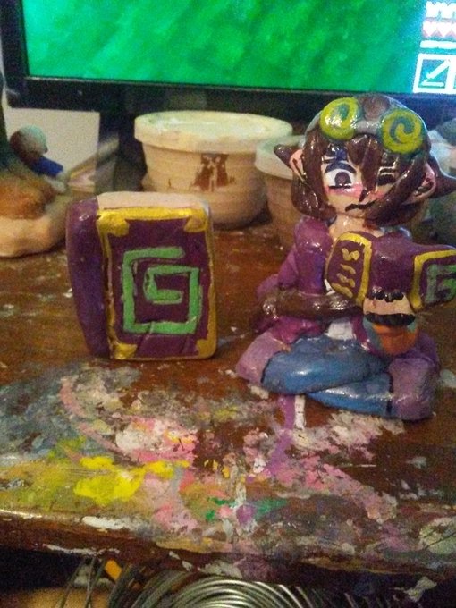 Made a @KarlJacobs_ clay figure. This took longer to make out of everyone lmao I started this week's ago. Fun fact the book I made during the 4th Tales stream but didnt paint it till I was working on Karl #karljacobsfanart #karljacobs #clayfigure #dreamsmpfanart #dsmpfanart