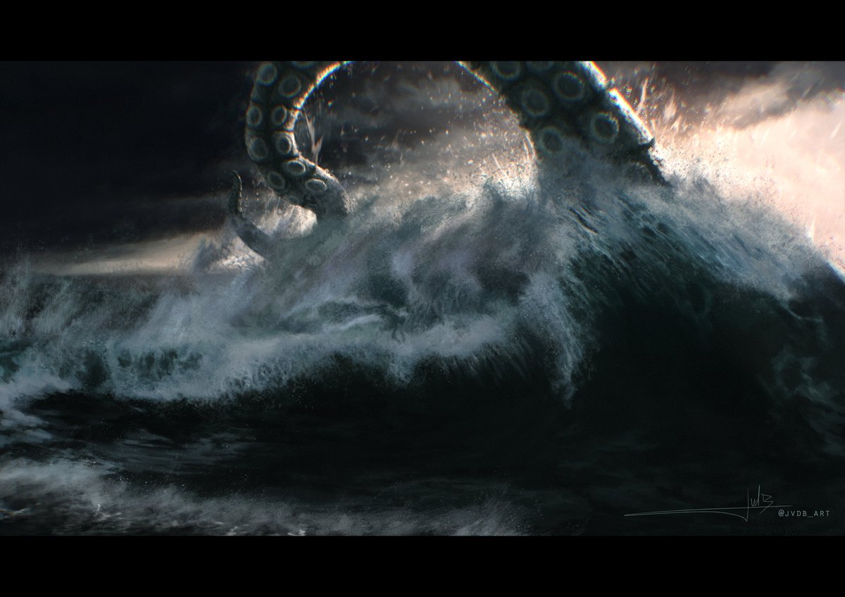 A slice of Ocean 🌊🖤 Trying to get better at capturing atmospheric environments using fewer, but more effective brushstrokes & only adding detail where it's really needed. A challenge. 🥹 #digitalpainting #landscapeart