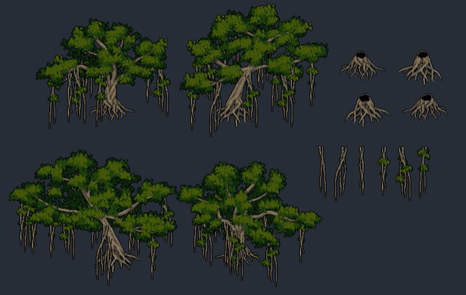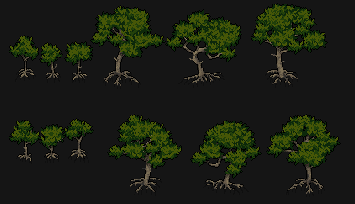 A forest clearing. Made in 6 min 32 sec using #dungeondraft and my upcoming #pixelart #ドット絵 asset pack.