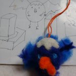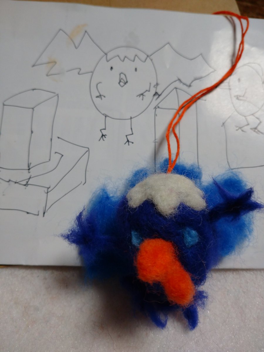 アーヤと魔女にも出てくる デイモンを作ったつもりだった 下絵と違いすぎる たまごっちの成長に失敗した奴みたい #羊毛フェルト #アーヤと魔女 #たまごっち #デーモン #デイモン