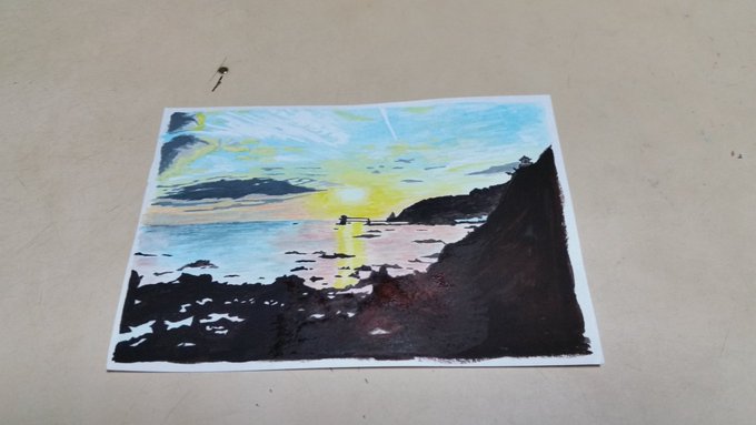 今日も1日お疲れ様でした😉👍✨ 明日は休み✨🙌✨ まぁ いつもの腰痛回復休日なんですが😅 最近寒さもあるから めっちゃ痛い😵💥 少しでも回復しなければ‼️😭 それでは皆さんおやすみなさい✨🙋 #水彩画 #趣味 #和歌山県 #串本町 #串本海中公園センター #夕陽