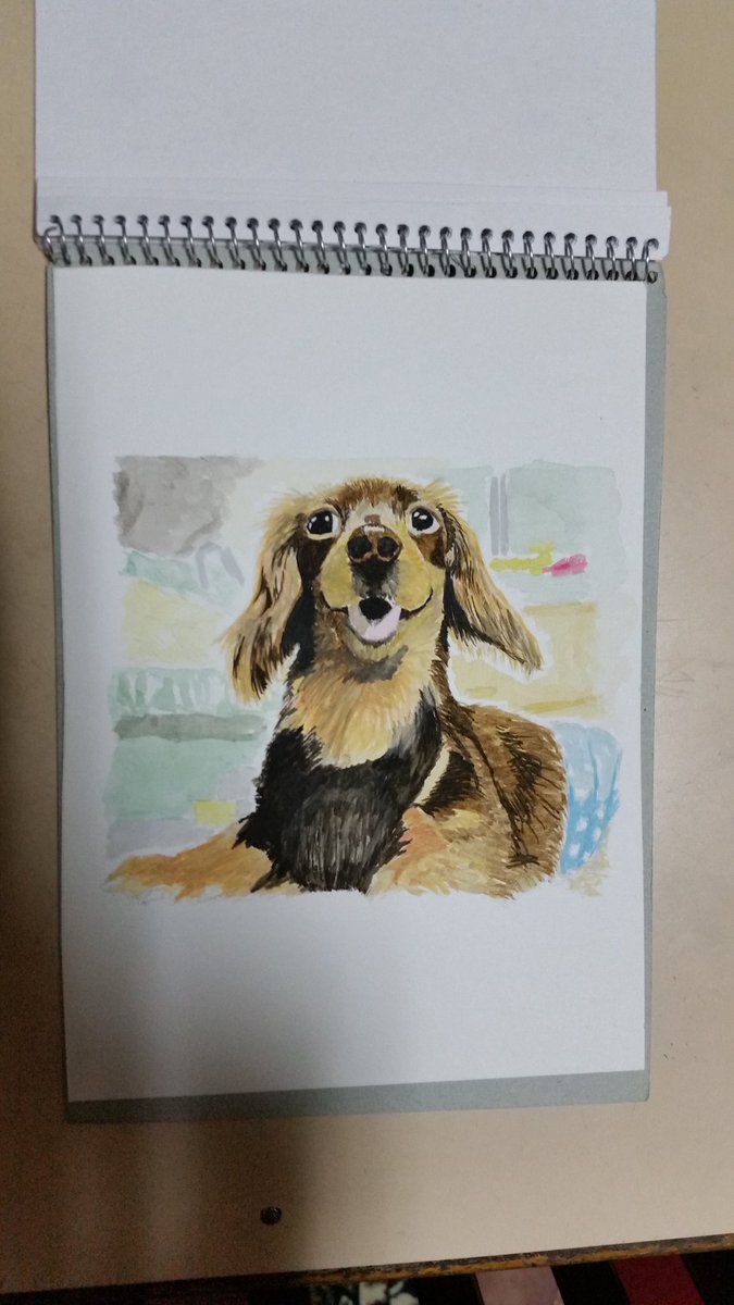 今日も1日お疲れ様でした😉👍✨ 明日は休日🎵 お金がないので いつもの腰痛回復休日にします😅 それでは皆さんおやすみなさい✨🙋 #水彩画 #趣味 #犬