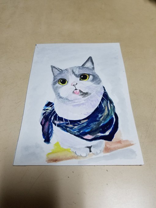 1 35 今日も1日お疲れ様でした😉👍✨ 夜勤休憩中です✨😌 朝まで頑張ります(^-^ゞ それでは皆さんおやすみなさい✨🙋 #水彩画 #趣味 #模写 #猫 22/01/24 00:15