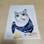 今日も1日お疲れ様でした😉👍✨ 夜勤休憩中です✨😌 朝まで頑張ります(^-^ゞ それでは皆さんおやすみなさい✨🙋 #水彩画 #趣味 #模写 #猫