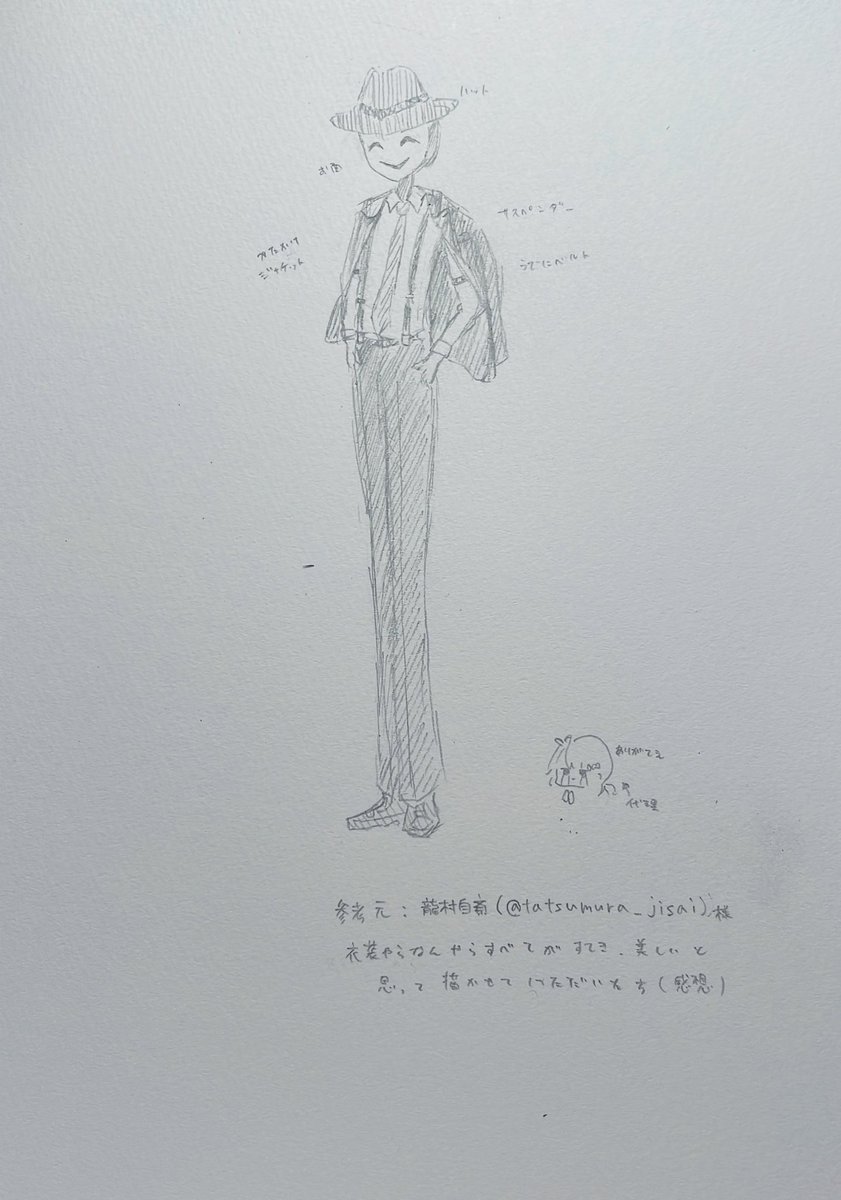 龍村自斉@tatsumura_jisai さんの衣装を参考元としてオリキャラ描こうとしたけど気づけば龍村さん描いてた(これはもはやファンアートでわ……) #ファンアート #アナログイラスト twitter.com/tatsumura_jisa…