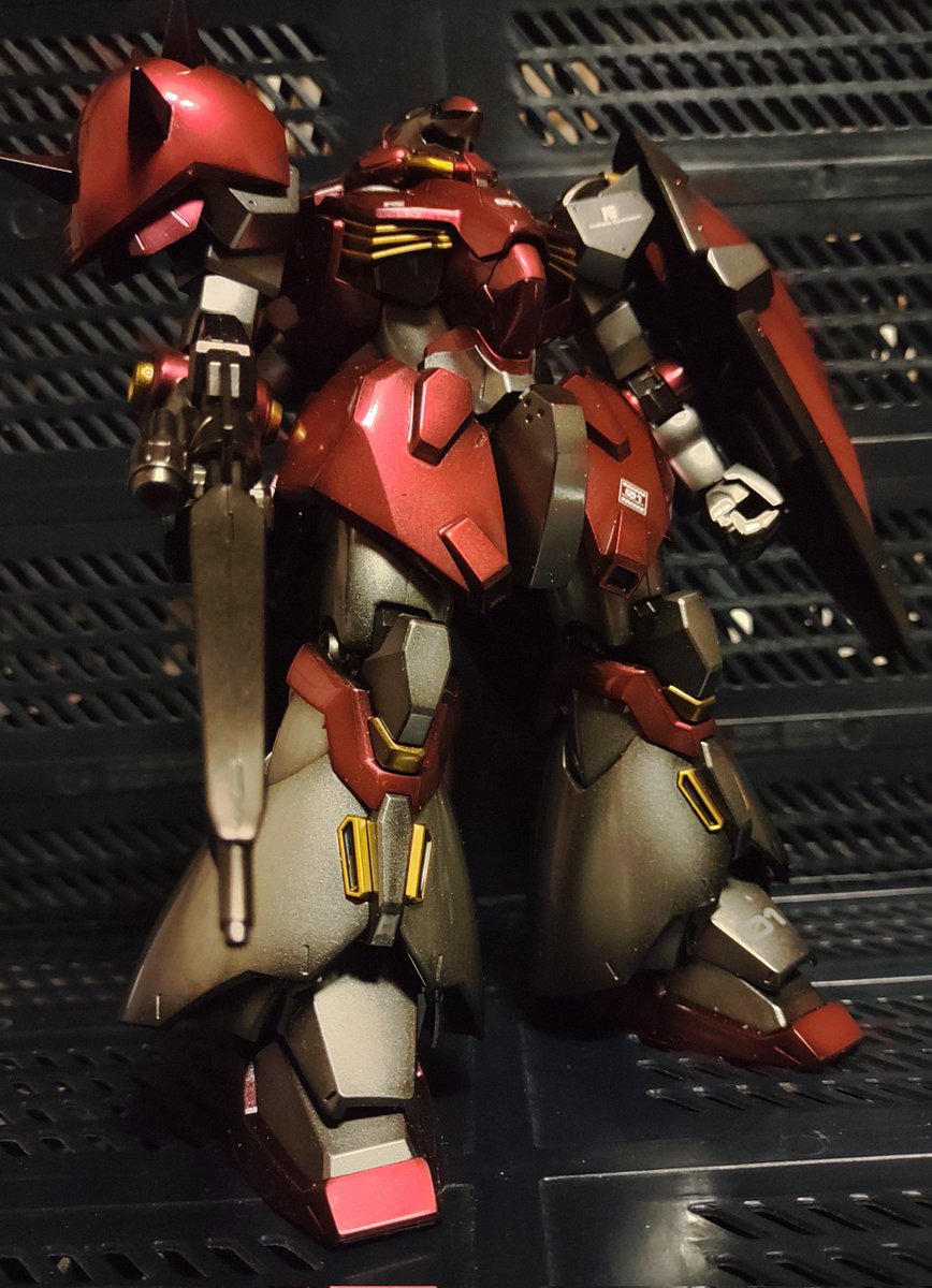 HGヤクト・ドーガDEATHΨ( ̄∇ ̄)Ψ カラーはスターブライトシルバー下地にディープクリアレッドとディープクリアブルーのキャンディ塗装 盾等はスーパーアイアン 頭部アンテナはシンプルにしたくてカットしました。 反省点は多々ありますが取り敢えず完成 #ガンプラ #HGヤクト・ドーガ #赤と青