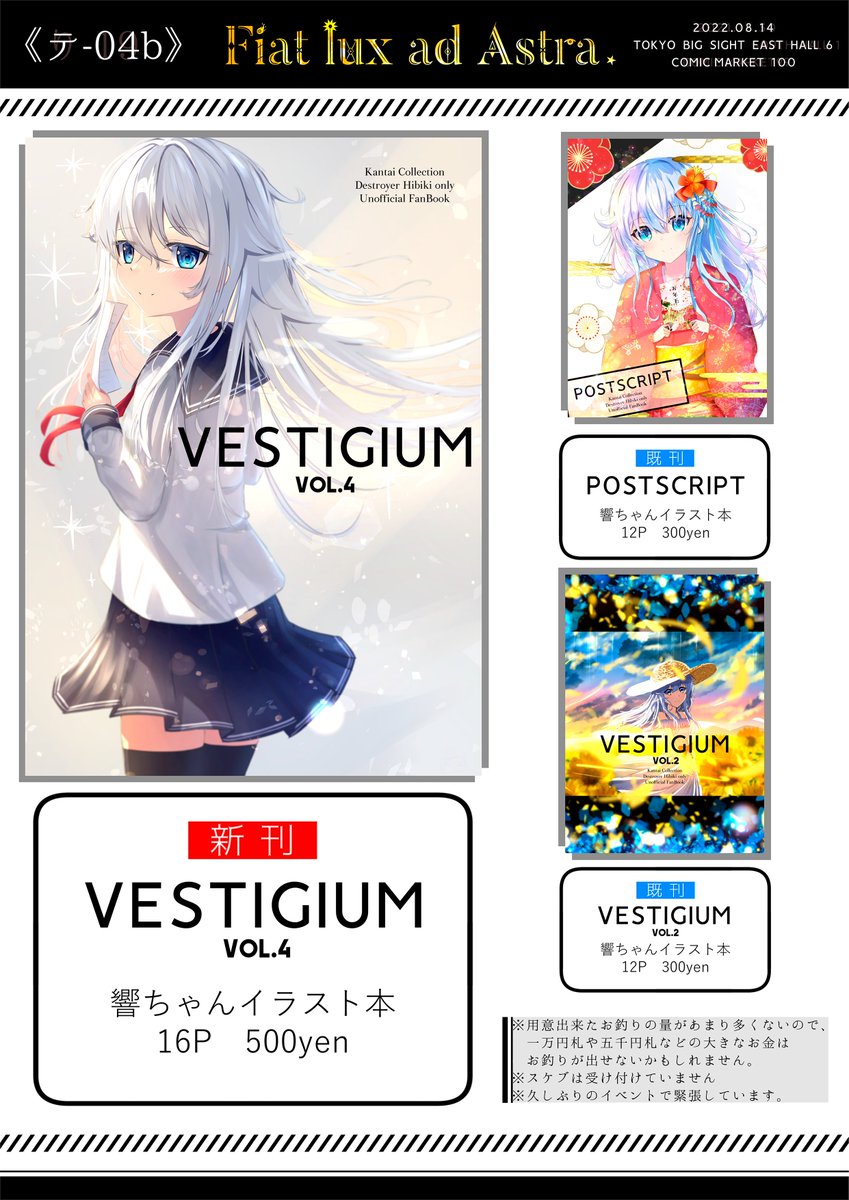 当落通知メールの設定忘れてて気付いてませんでした。 頑張ります! あなたのサークル「Fiat lux ad Astra.」は、コミックマーケット100で「日曜日東地区 "テ " 04b」に配置されましたwebcatalog.circle.ms/Circle/Map/162… #C100WebCatalog