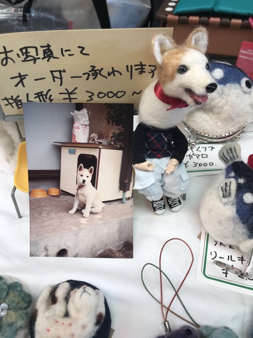 0 1 #おいでやす蚤の市 #ハンドメイド #羊毛フェルト 犬も作ってます 19/11/23 17:44