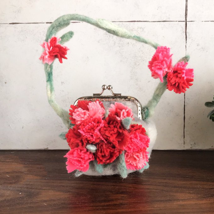 #羊毛フェルト #ハンドメイド #ガマ口 大分遅れた母へのガマ