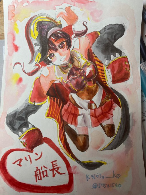 1 9 マリン船長❤️⚓️ #マリンのお宝 水彩たのしぃー 22/12/28 21:51