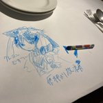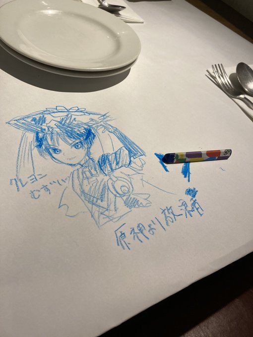 1 16 机の敷いてある紙にクレヨンで好きにかけるレストランに来て、原神(推しの放浪者)を布教しようと思って描いたけど、クレヨンむずすぎた笑笑 #原神 #原神イラスト #Genshin #イラスト 23/03/12 18:31