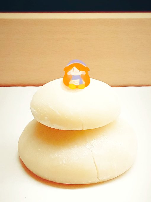 #50人イラフト 鏡餅に飾るミニ蜜柑が無くて困っていたらミニわどるどが代わりに乗ってくれてました☺️