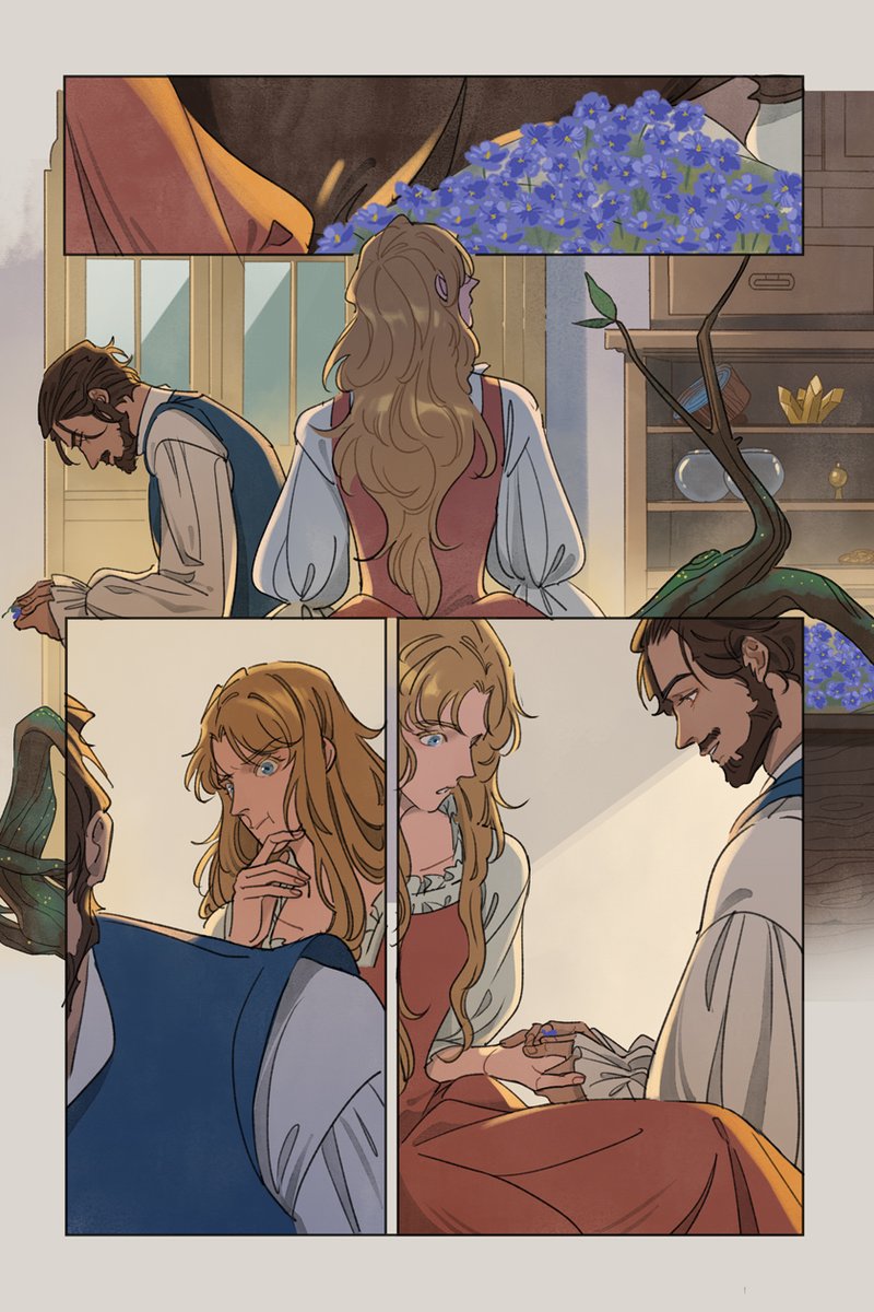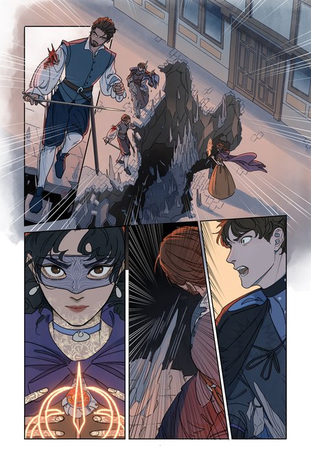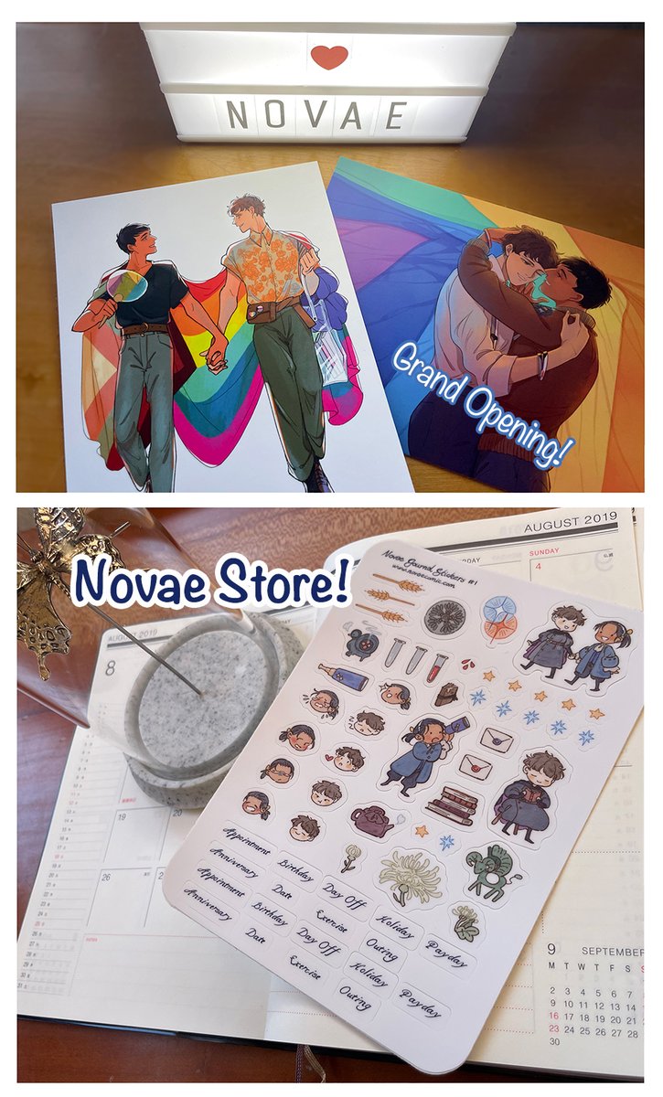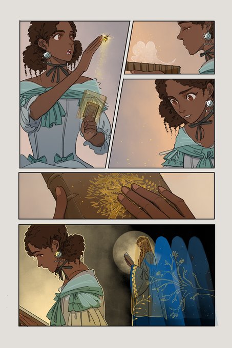 Hello #PortfolioDay ✨ We are comic artists and we make Novae: a love story between a necromancer and an astronomer, discovering the universe together, and navigating dark magic societies. (🔗 below to read~)