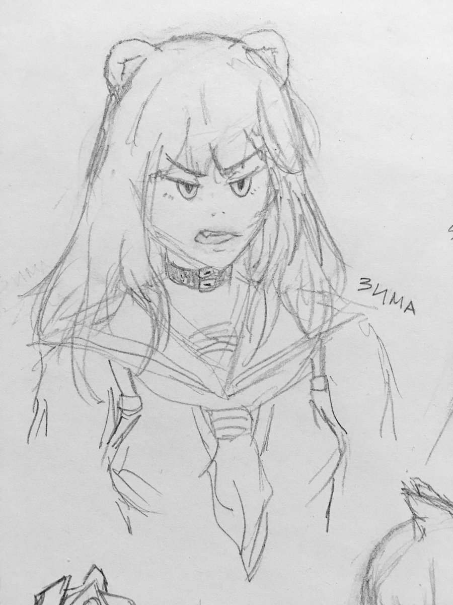 line art for tamaki kotatsu from fire force! honne_69’s stories compelled me to try out lining with pencil instead of ink #wip #fireforce #tamakikotatsu #rkgk #sketch