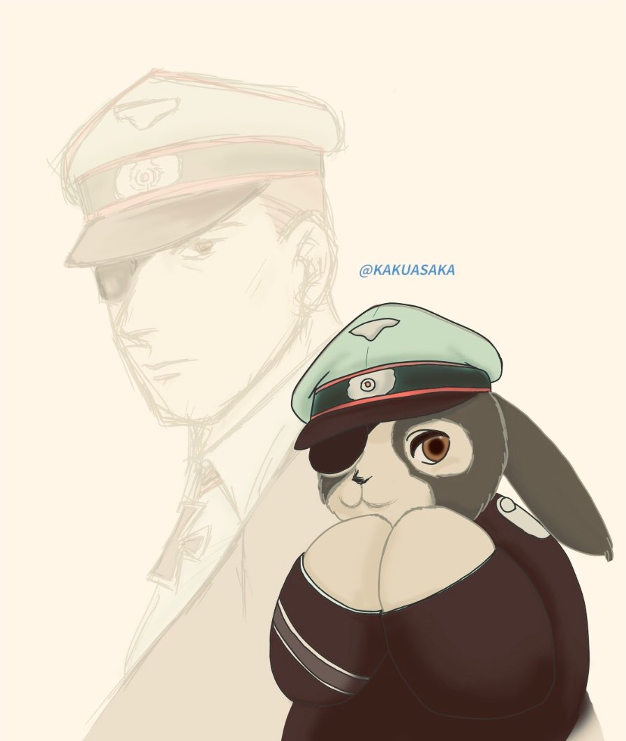 #みなさん去年の今頃はどんな絵描いてましたか 珍しくヒト描いてた。🐰のくろきしのえみーるの心眼(?)バージョンは?と身内に言われてこうかな?と想像でささっとその場で描いた落描き。色々間違いが(ノ_<)。