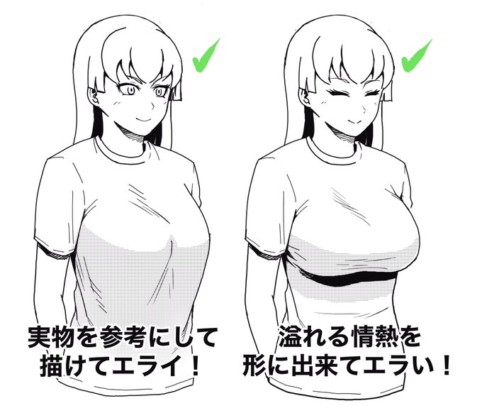 16.4K 61.5K また胸や服の描き方で正解・不正解と決めつける講座が流れてきてゲンナリしたので、もうどっちだろうとこんな感じで褒めまくってくれませんかねという落書きです 23/08/11 13:36