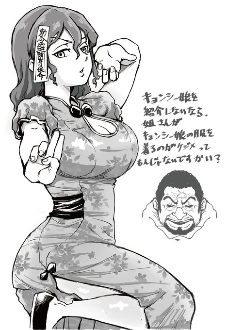 ハクノ姐さんの動画でですね…、僕は別に良かったんですけど藤虎さんが「可愛いキョンシー娘が出てくるお店の紹介動画で、キョンシー娘が登場しない…?そいつは筋が通らないんじゃないんですかね?」と凄んでくるのでやむを得ず描きました。海軍大将の頼みじゃしょうがないですよね #画伯ノ