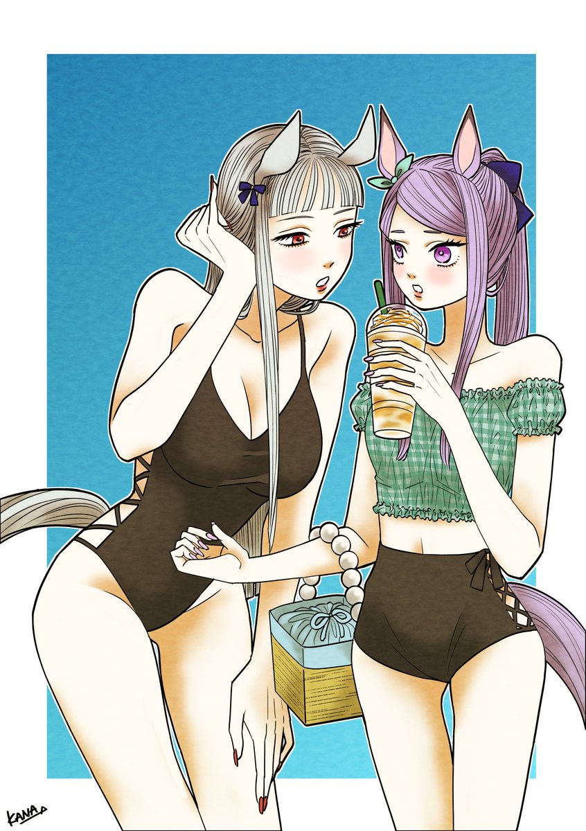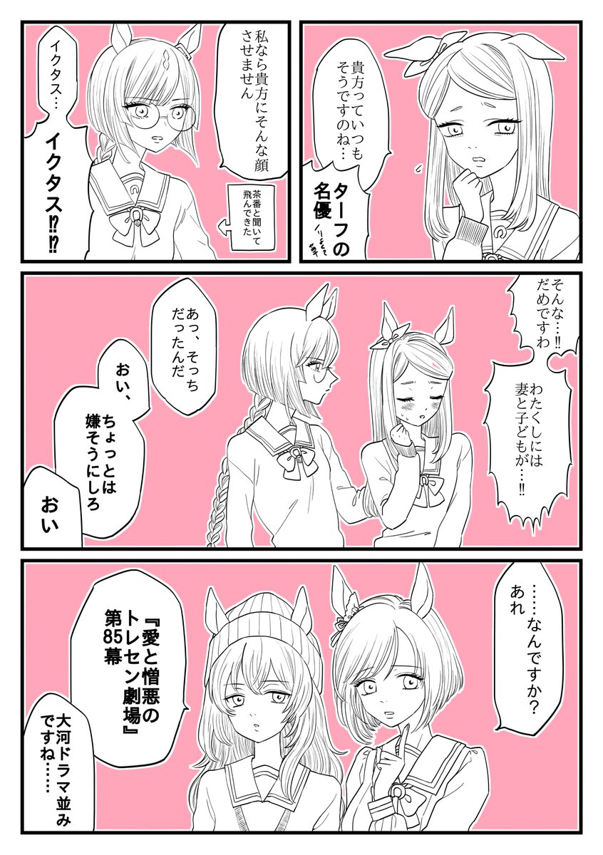 タニノ親子ガチ恋オタクが描きました。許してください。#ウオッカ #タニノギムレット #ウマ娘