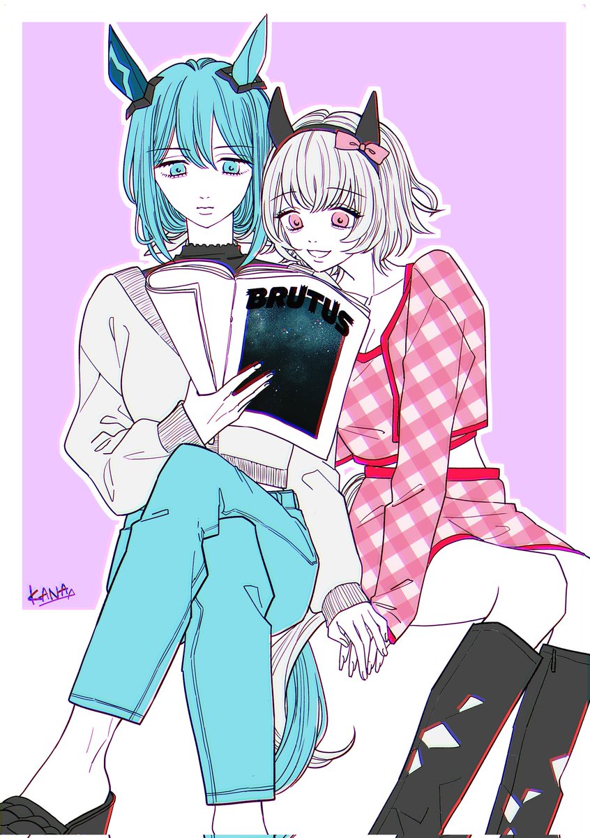 カレアヤちゃんが仲良くしてるだけでご飯50杯オタクです☺️🫰🫰🫰 アヤベちゃんが読んでるのは星空旅行特集