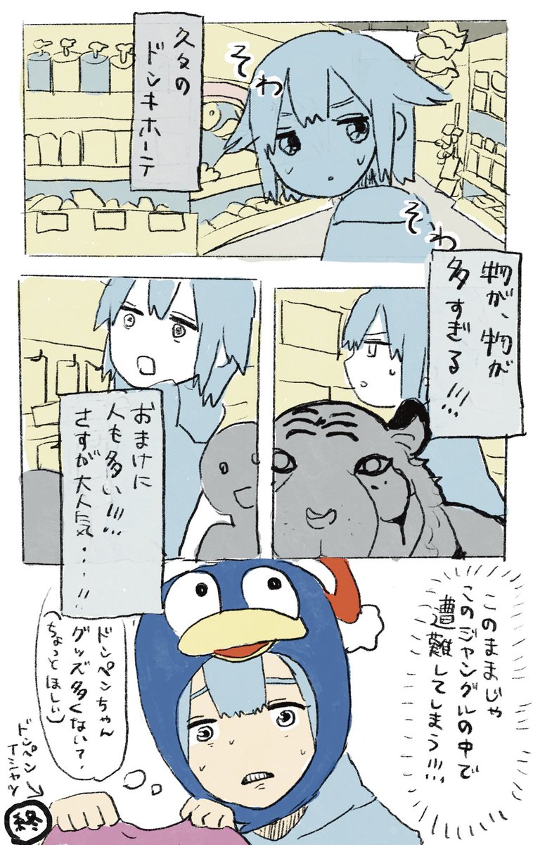 4 17 今日はコラボグッズ目当てでドン・キホーテに行ったのだ。 お目当てのハンドウォッシュとタオルのセットは売り切れでした。(行くのが遅すぎた・・・) ドンキは楽しい。 #漫画が読めるハッシュタグ 21/12/22 20:54