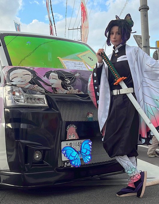 ⚠️cosplay 鬼滅の刃 胡蝶しのぶ 蝶屋敷ハイゼットトラック痛車 オーナー様 桃華丸さん @momokamaru1216 #ふるさと海南まつり2023 #2023ふるさと海南であいましょう #ふるさと海南まつり