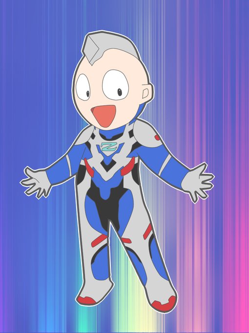 ご唱和ください、という事で、ウルトラマンキッズ風にゼットさん描いてみました。デフォルメに落としこむのがむずかしい・・・ #ウルトラマンZ