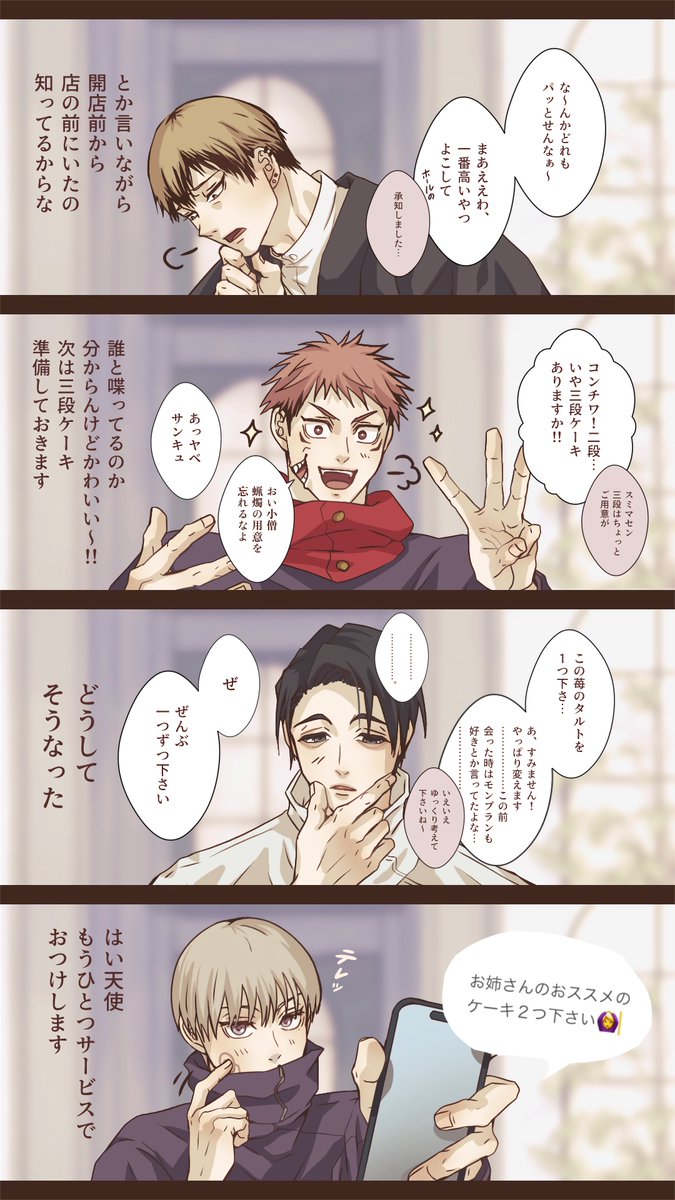 夢主のバースデーとお気に入りの🎂屋を知ったじゅ男子達 直 虎 乙 狗 伏 七 夏 五 ※モブ店員視点(セリフあり) #じゅじゅプラス