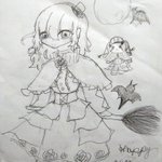 約一年前のハロウィンイラスト(一枚目)を先程リメイクしていました。自分は直撮りに嫌われているのでしょうか… 自創作のオミ、魔女です。そこら辺にふよふよ浮いてる兎みたいのが使い魔のミラ。両者色つきのイラストは昔の投稿に落書き程度にあります。 #イラスト #KARASUの子