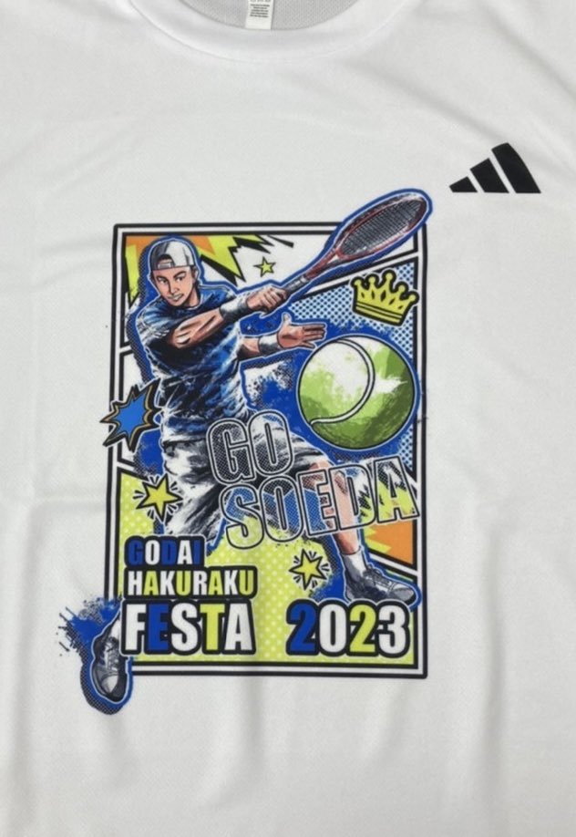 0 10 高校の先輩でもある添田豪プロのTシャツイラスト描かせて頂きましたー‼️‼️ adidasコラボでもあります😁😁 #godai #白楽 23/04/29 13:39