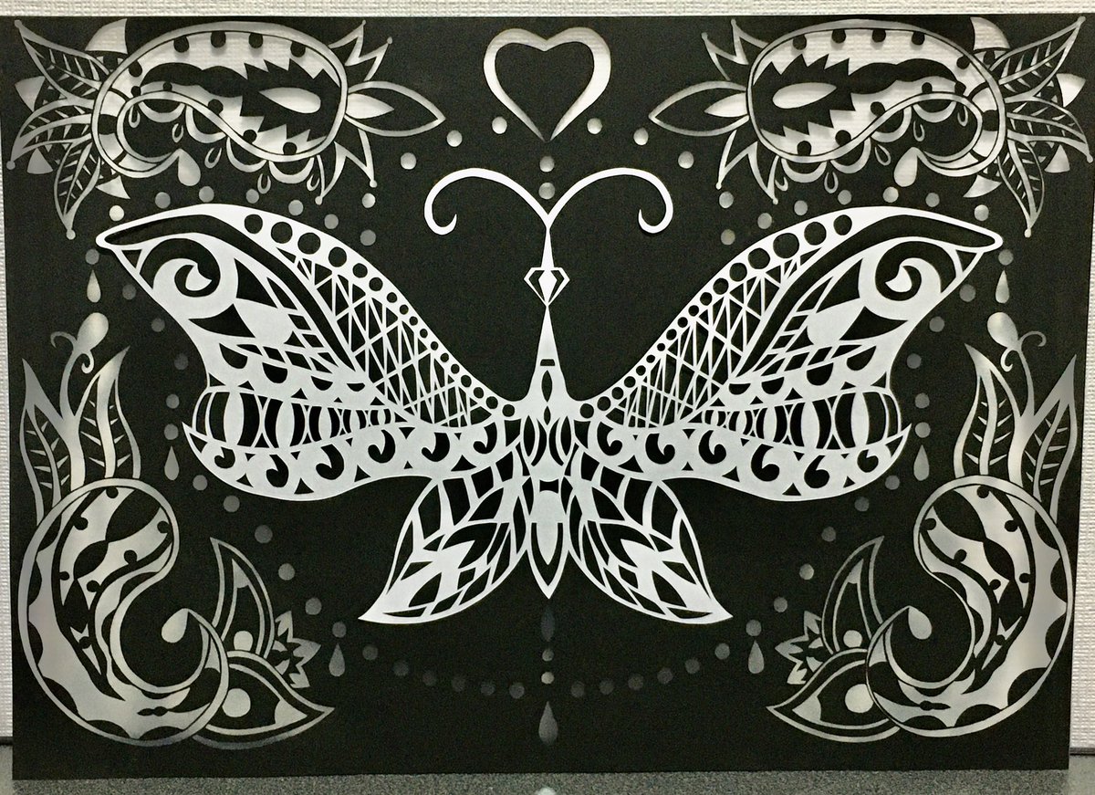 #切り絵 の #経過途中! 中心の細かい部分を切りました! あとは、全体の部分を切れば終わります! 油断せずにいこう! #切り絵アート #イラスト #アート #オリジナル
