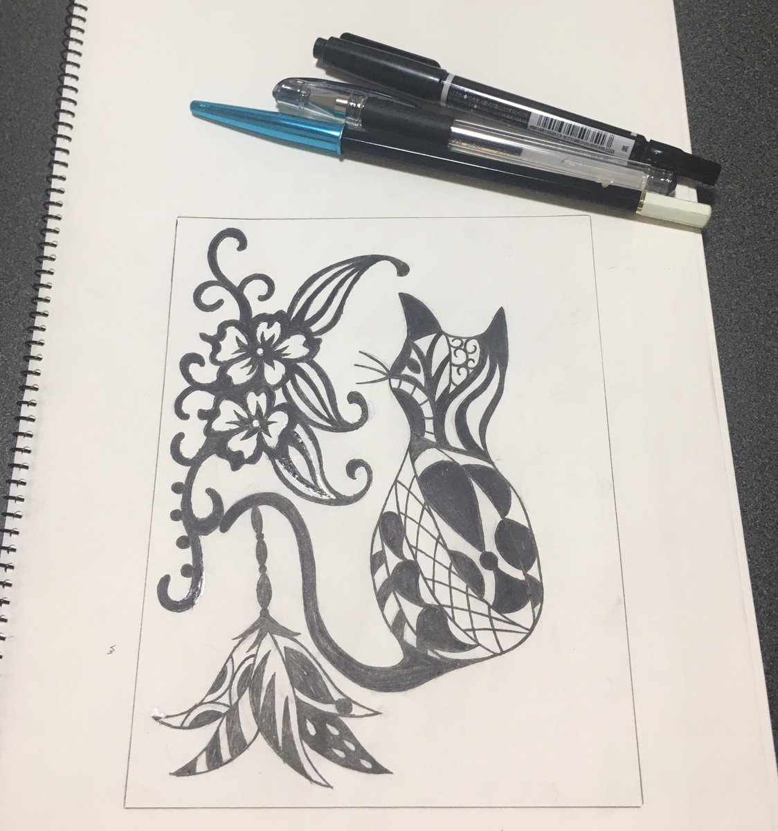 #切り絵 の #経過途中 ! 下描きが完成し、ペン入れしました。 シンプルな分、細かくて難しいwww 次回にはトレーシングペーパーに写していきます! #切り絵アート #アート #イラスト #オリジナル #下描き