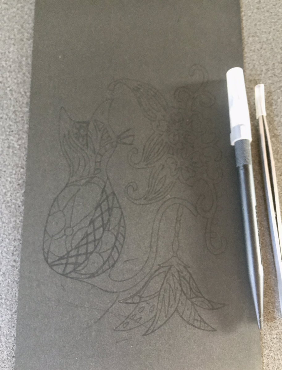 #切り絵 の #経過途中 ! トレーシングペーパーに写し、更に黒紙にも写し終えました! さっそく切っていきます! #切り絵アート #イラスト #アート #オリジナル #切っていきます