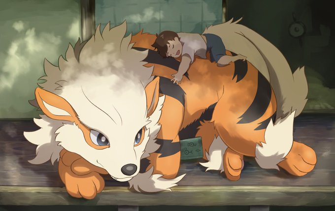エアコン18℃で一緒に寝るのがオススメです。 #ポケモンと生活 #ポケモンイラスト #ウインディ