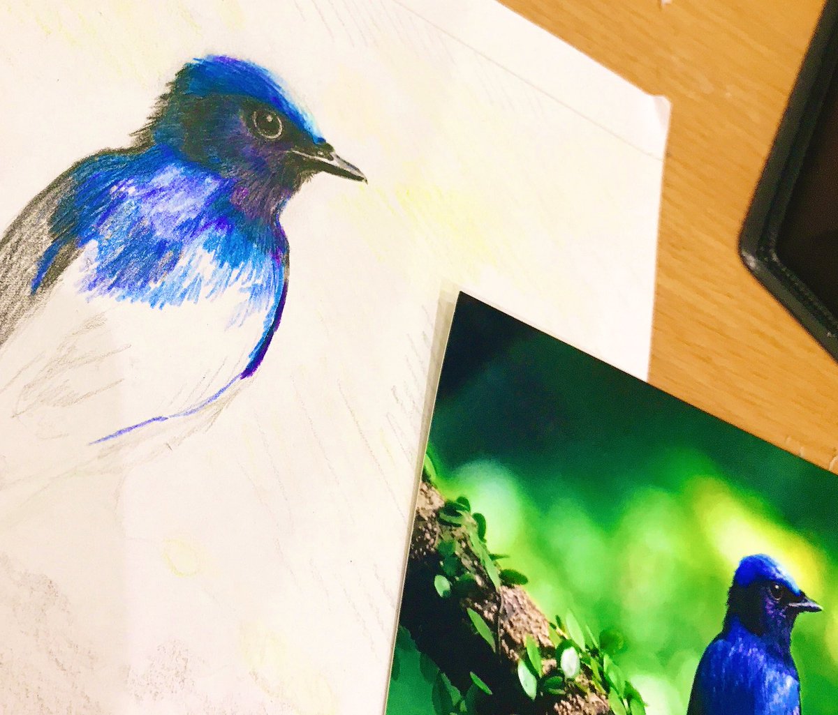 #とり #色鉛筆 #色鉛筆画 オオルリ!途中経過 ほんとに撮影してきたらしい! うちの子に名前が似てる笑笑 さて今日は鳥を見続けますか。 ↑玉ねぎから耐性が付いた笑