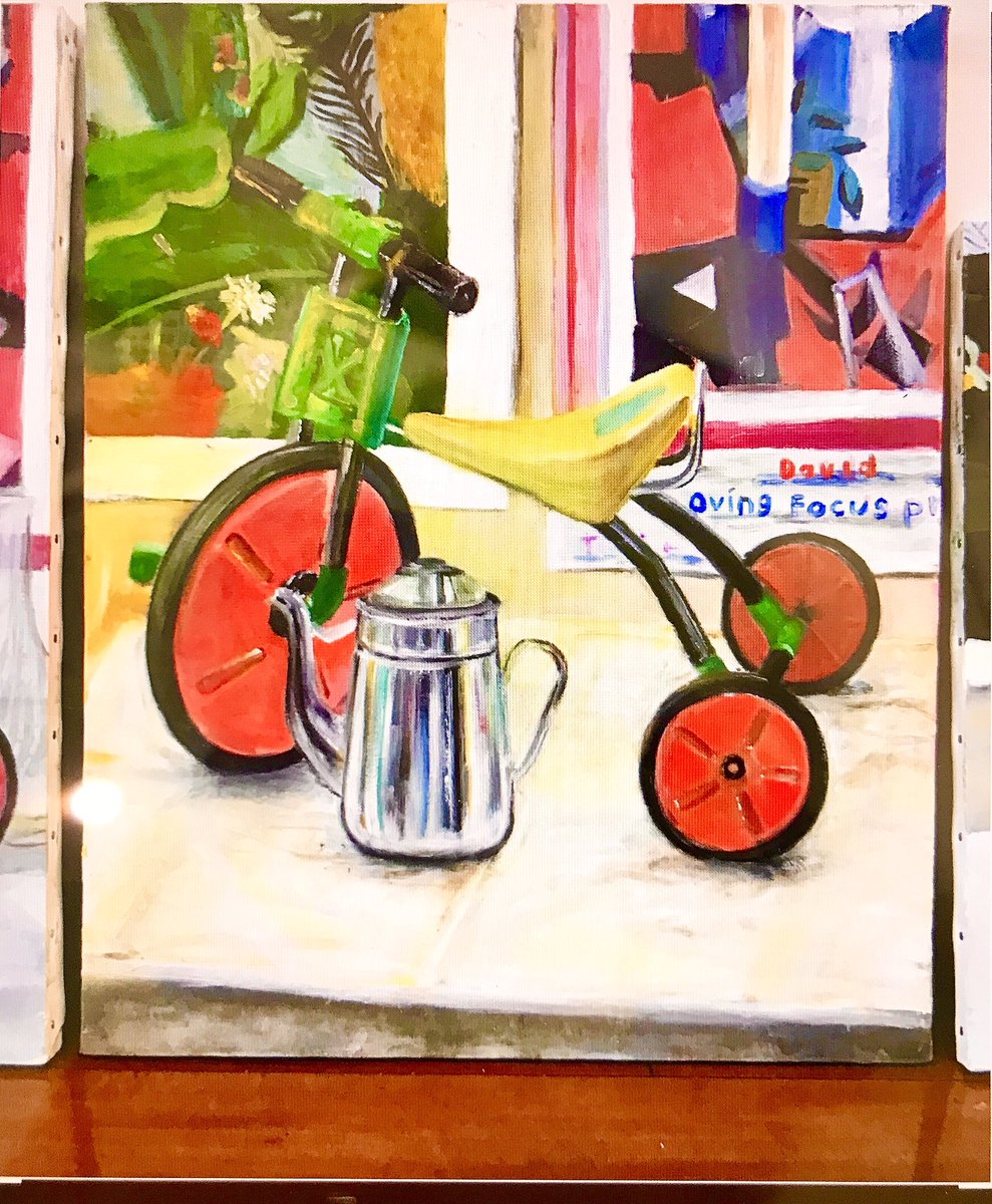 懐かしの三輪車って感じで描きました! 油絵3回目