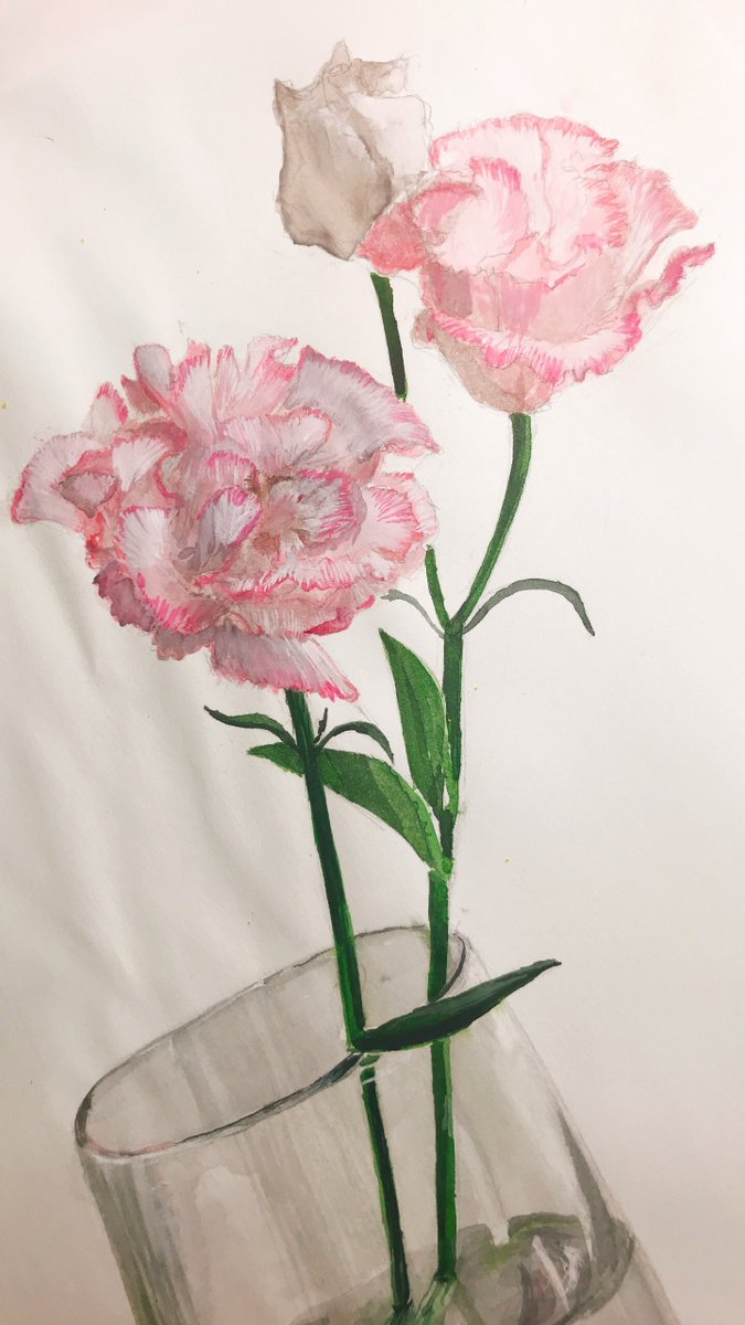 初めて水彩で花描いた。 枯れた花見て咲き誇った花描くととても心苦しいwww #水彩画 #水彩 #art #日本画 #日本画いけばよかった #デザイン #Design #イラスト #絵描きさんと繫がりたい