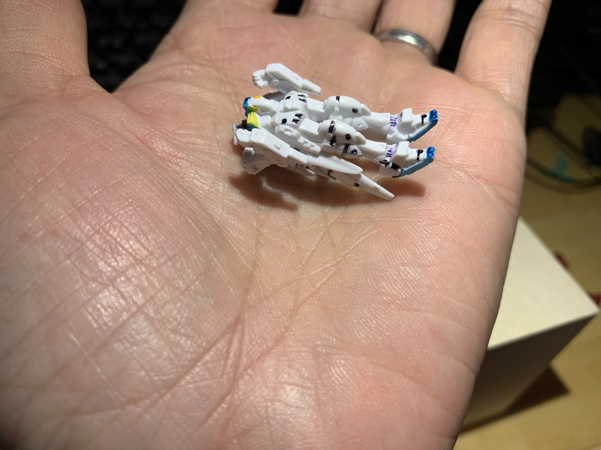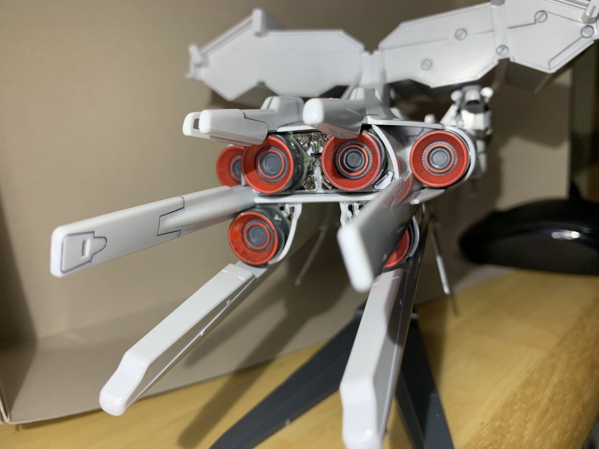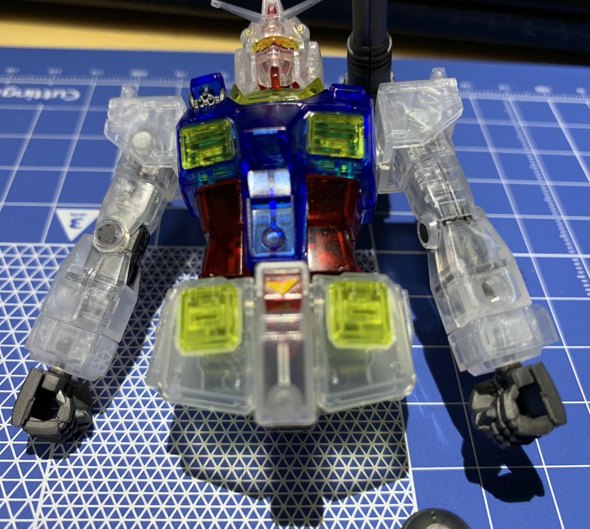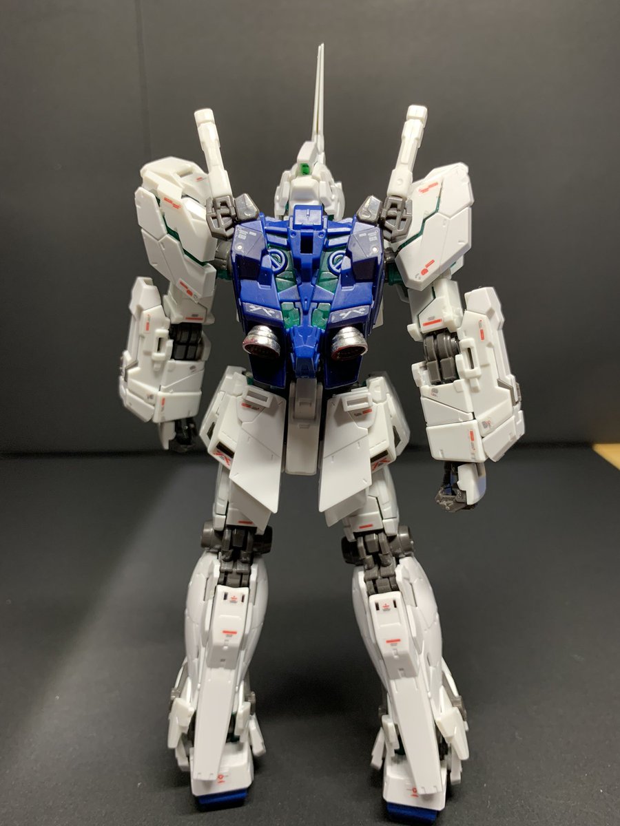 ガンプラは本体のデカール貼りにかかる。あまりにも数が多くて、どこから手をつけようか、しばし悩む。 とりあえず背面からやることとした。 以前のHG 1/100 スケルトンボールで鍛えられていたのか、1時間くらいで背面は貼り終えられた。 貼る前と貼った後。 #ガンプラの画像を貼るとRTされると聞いて