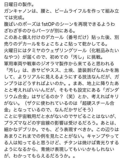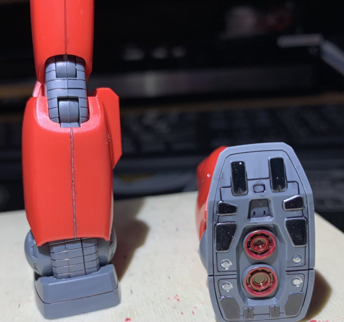 土曜日の製作。 ガンキャノンの両脚はゲート処理、隙間埋め→筋彫り→墨入れ。 足裏の塗り分けもやってみた。 それとランドセルのノズルの外側をメタリックで塗った。 #ガンプラの画像貼るとRTされると聞いて