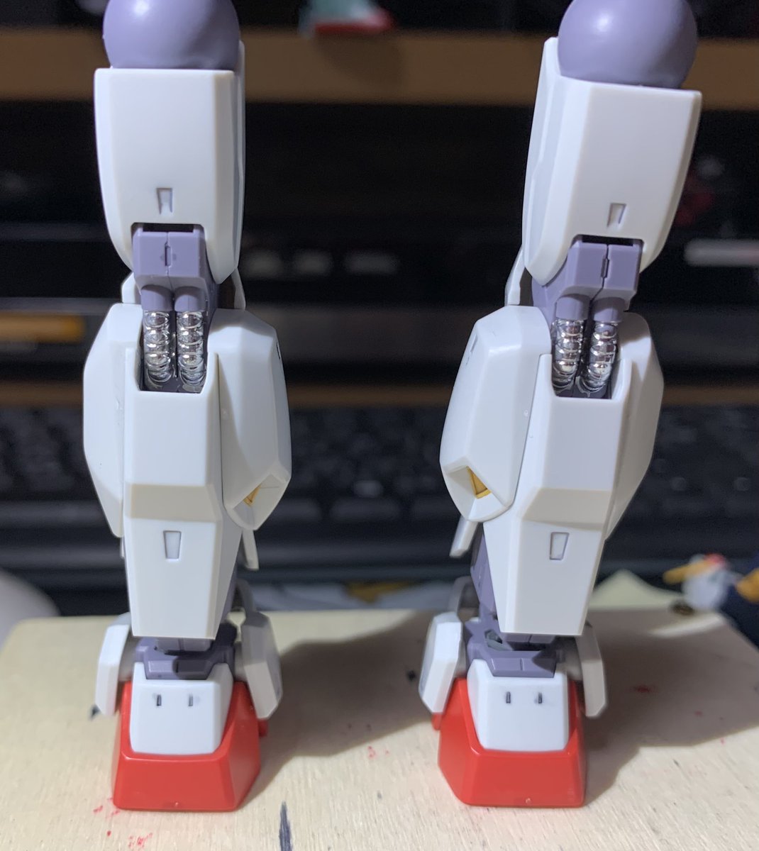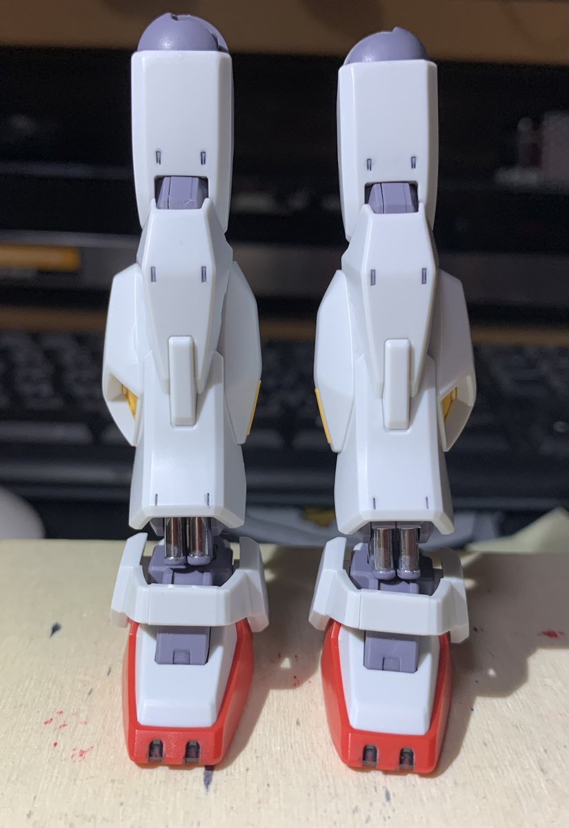 ガンプラの続き。両脚のゲート処理、スミ入れ、組み立てまで。これで腰を作れば組み上げられるけど、私の腰がもたなかったw 組み立てたら見えないところも丁寧に塗装。Mk-IIってジオン系の技術が入ってるのかな? 動力パイプがちょこちょこ使われている。 #ガンプラの画像貼るとRTされると聞いて