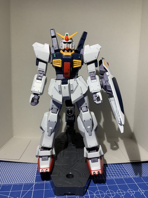 ガンダムMk-IIティターンズ仕様完成。 デカールは3か所のみ。動力パイプをシルバーメタルに、バックパックのノズルをレッドに塗りましたが、あとは墨入れ程度。パーツ色が濃いのでブラックで入れましたが、黄色いパーツはなじむようにグレーで。 #ガンプラの画像貼るとRTされると聞いて #鈴木絢音