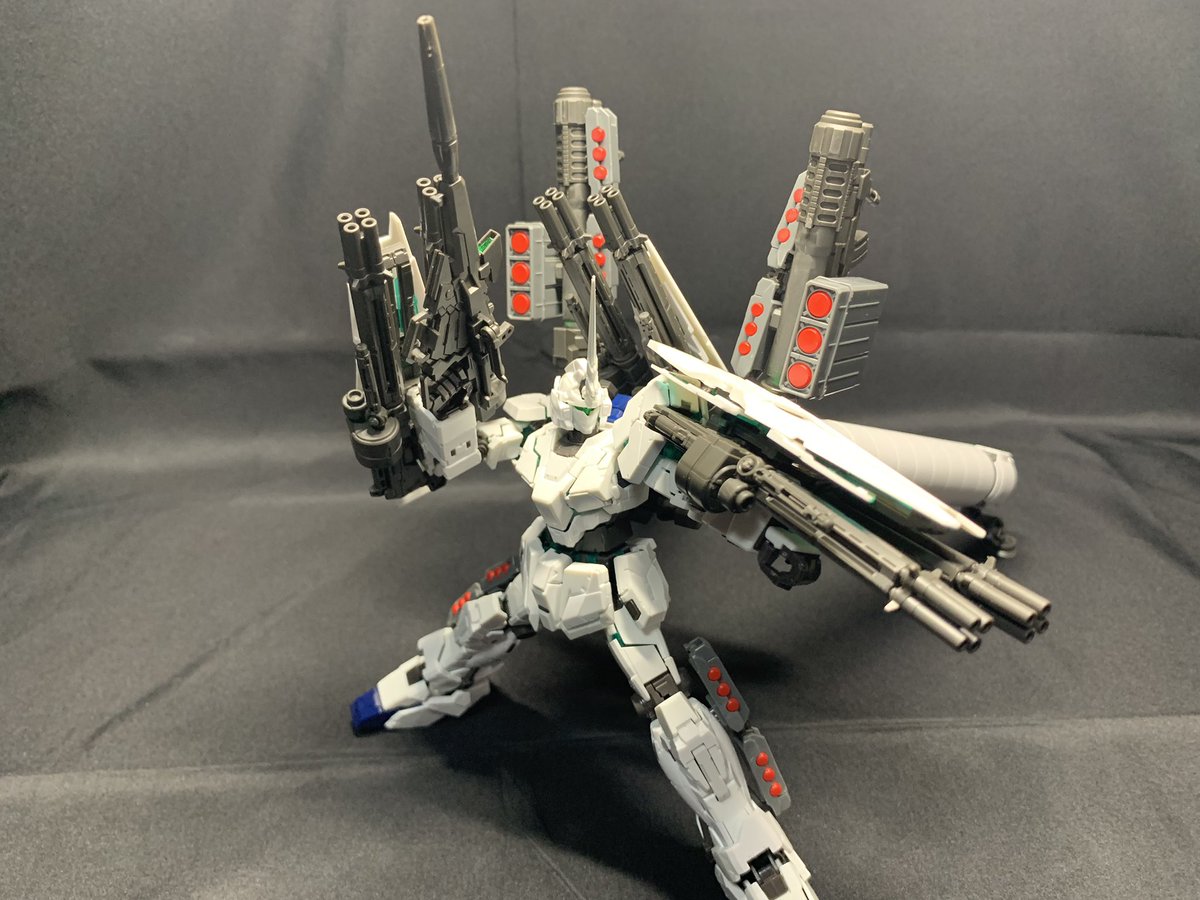 フルアーマー・ユニコーン・ガンダムのパーツを綺麗にして組み上げた状態、ようやく武装も終わりまして、いったん撮影してみました。 次からはデカール貼りですが、ご覧の通り数が多いので、また時間がかかりそうです。 #ガンプラの画像を貼るとRTされると聞いて #ガンプラ